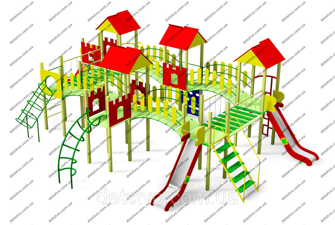 5 башти, 2 балкони, 3 горки Н спуску=1,5м, рукохід, сходи з поруччям, стінка для лазіння, спуск "Спіраль", спуск "Тунель", спуск "Ліана", жердина "Сходинки", шведська стінка, лаз шведська стінка, 4 перехідних містка по дузі, дві переправи на ланцюгах, Д=11,3м, Ш=6,6м, В=3,3м